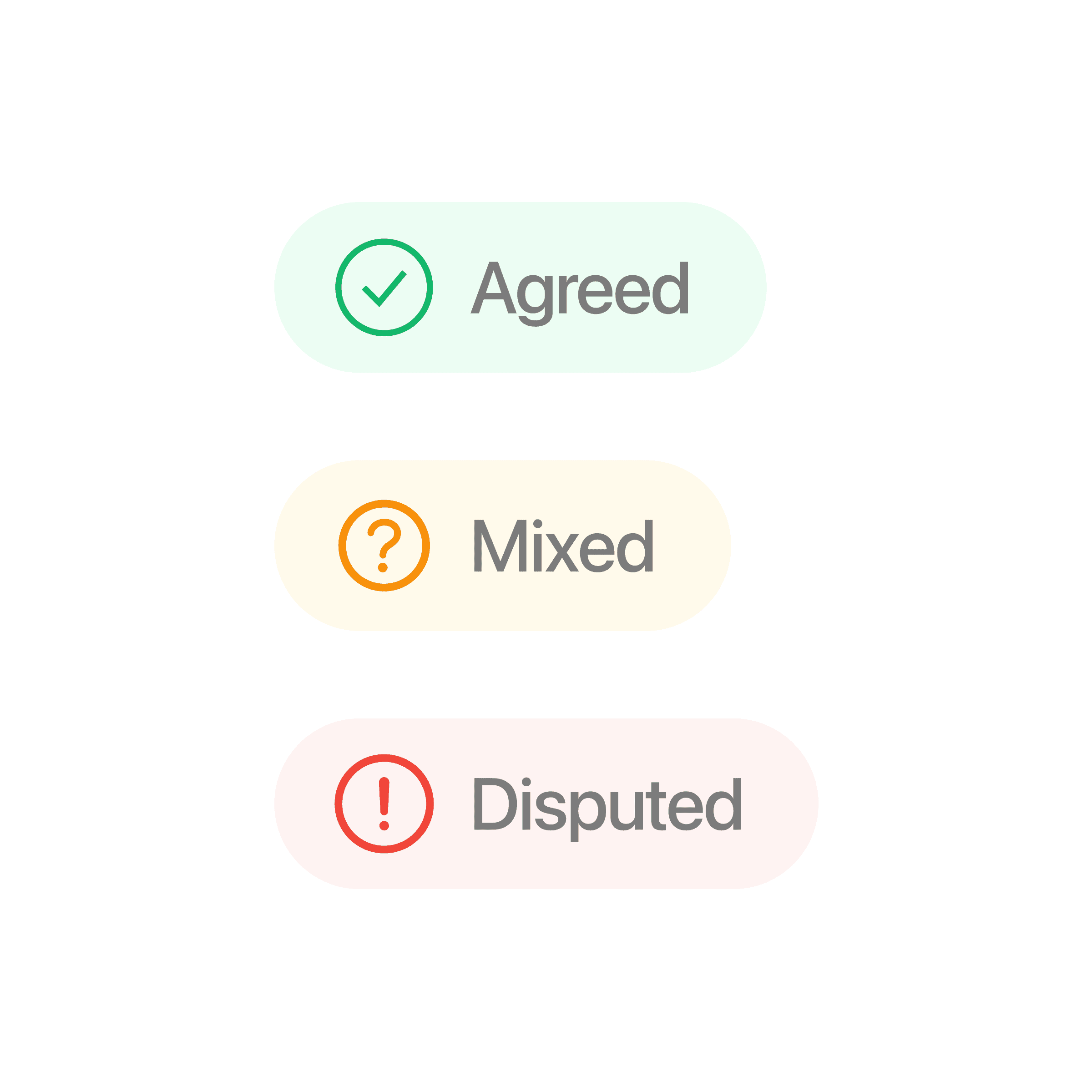 Key experience 3: Consensus as claim cards (Agreed, Mixed, Disputed)