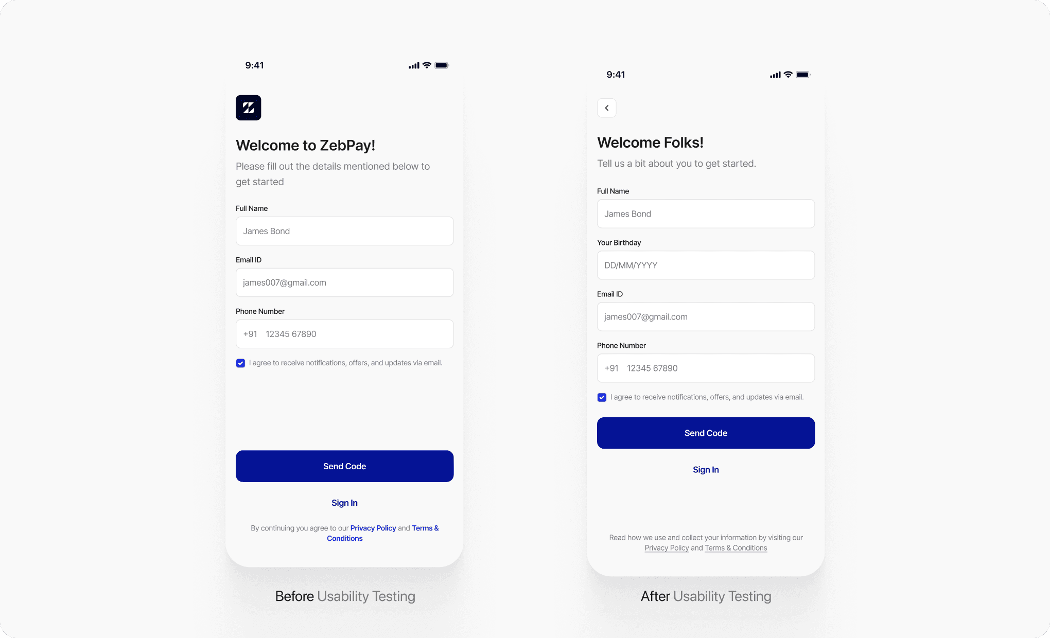 Added Birthday Field: This improved trust and reduced user friction by aligning with mental models users were more confident they were completing a full KYC.