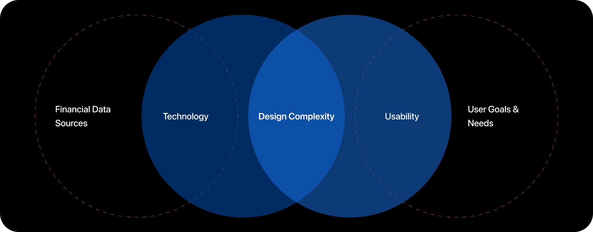 To find the sweet spot for Zeb Pay, we mapped out the intersection between three key areas: Financial Data Sources, Technology, and Usability. We discovered that the biggest challenge lies in the Design Complexity where these three overlap.