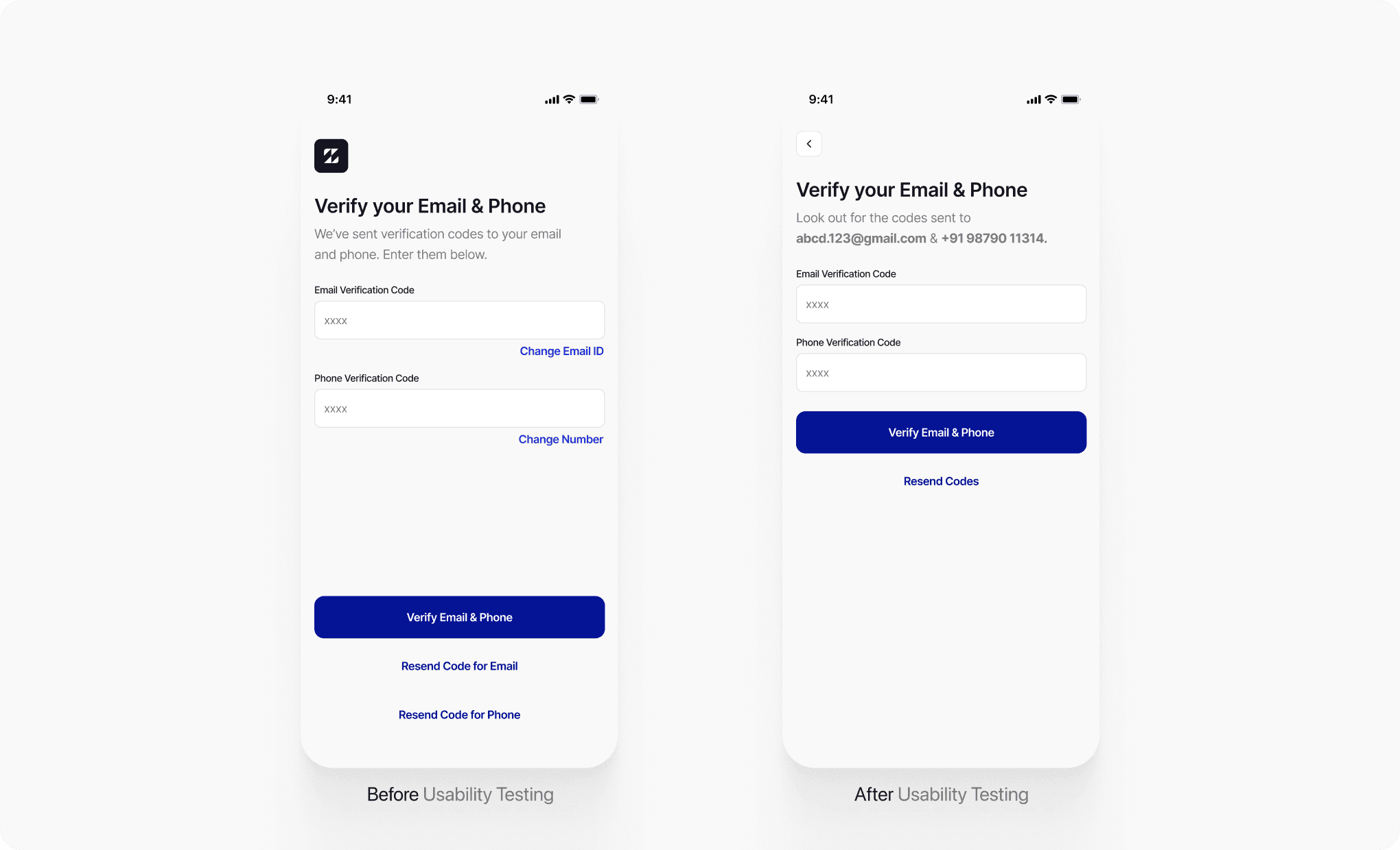 Some users missed the separate resend buttons or thought the two “Resend Code” options were clickable labels rather than action buttons.